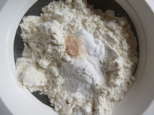 In a medium bowl, sift together flour, baking powder, baking soda and salt.