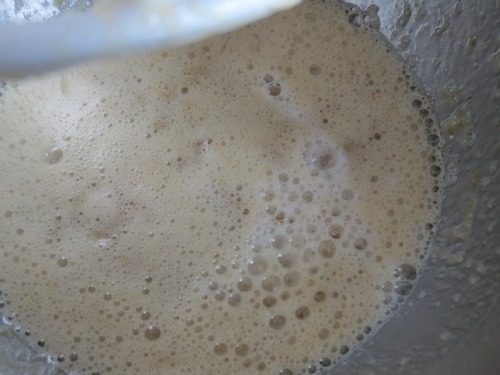 Add milk and vanilla (nether of which you can really see in this photo :/) and whisk until just combined.