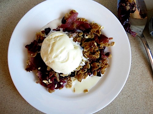 Serve with a big ol’ scoop of your favourite vanilla ice cream . . . or some plain greek yoghurt (I highly recommend Chobani . . . I speak from experience people . . . ah-mazing . . . just sayin’) Yes I realise there are no photos of this crumble with yoghurt because I may or may not have inhaled, devoured, enjoyed the last of it so much that I couldn’t tear myself away to grab my camera . . . sorry . . . but not really . . . it was deeeeelicious!