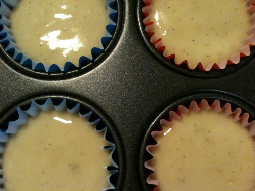 fill cupcake cases up about 3/4 of the way.