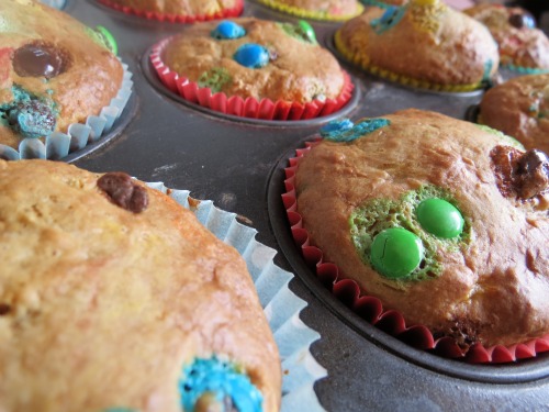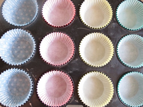 Spoon batter into lined cupcake tray and bake for approx 15 mins, or until toothpick has just a few moist crumbs attached when inserted into the middle.
