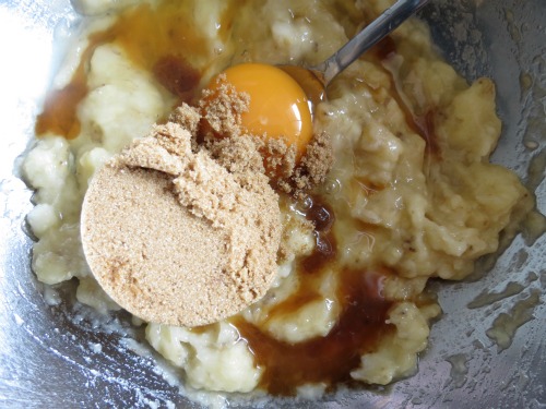 Add egg, vanilla and brown sugar and stir until well combined.