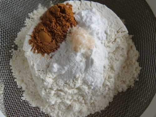 Sift flour, baking powder, baking soda, cinnamon and salt into banana batter and stir until just combined.