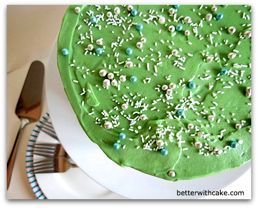 Cover the cake with the rest of your frosting then finish with sprinkles, because everything is better with sprinkles right 😉