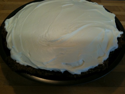 Once your crust has cooled, prepare your dream whip according to package instructions or alternately if you chose to use cream instead, lightly whip your cream then set aside.