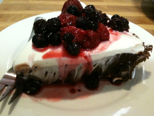 After the previous post for my all time favourite cookie crust it was requested by a dear friend that I share the recipe for the complete pie in the photo’s not just the crust. So here it is, my recipe for chocolate torte.