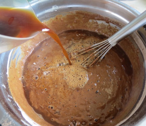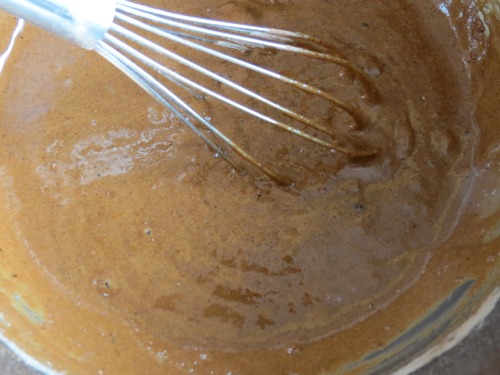 Pour over the buttermilk/sour milk and whisk until combined.