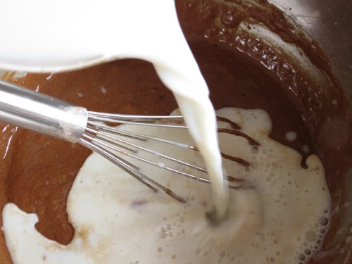 Add half of the four mixture and whisk until just combined.