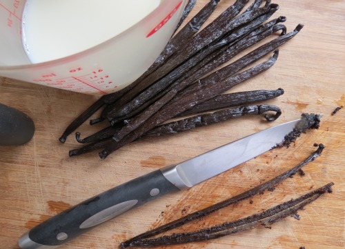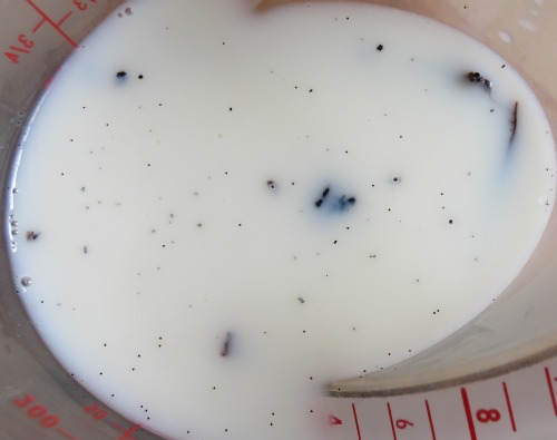 Place vanilla seeds into the milk and leave it to sit for about an hour to give the flavours a chance to infuse.