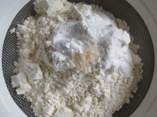 In a medium bowl sift flour, baking powder, baking soda and salt then set aside.
