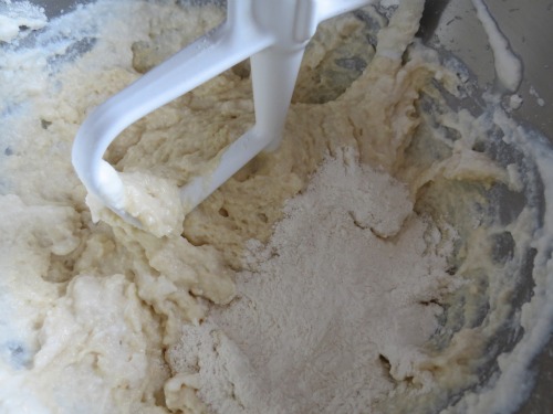 Then finally add the last of the flour mix…………do a little dance and whisk until just combined 🙂