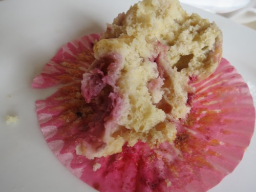 Now for something completely different….crumble your raspberries into the batter and gently fold into the mix.