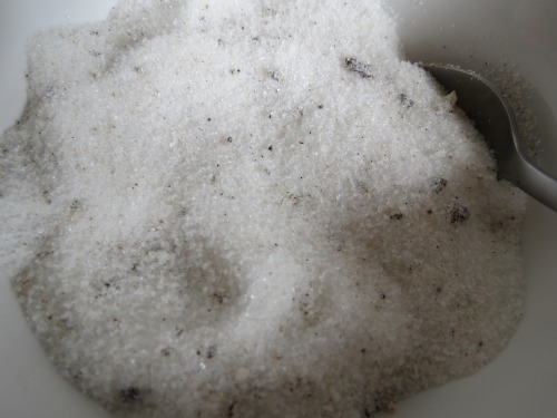 you will still have a few bigger chunks of vanilla….nothing to worry about. Set the bowl of intoxicatingly delicious smelling vanilla sugar aside and allow the flavours to really infuse for a few minutes.