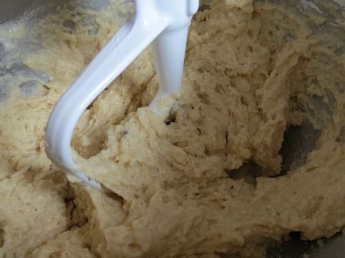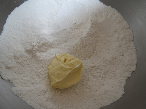 Add butter and mix at low speed for 3 mins, because there is so little butter in this batter your mix will look like fine sand/crumb sort of texture.