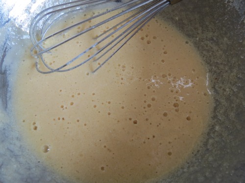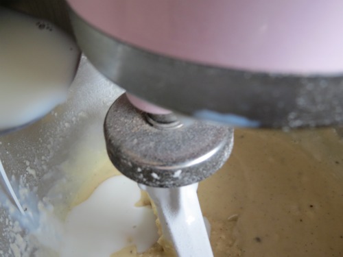 Gradually add the milk in a few separate additions (i did it in 3 separate additions), beating until just combined after each addition.
