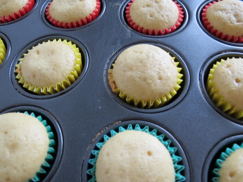 Fill your cupcake cases just over 1/2 way and bake for 12-14 mins (depending on the size of your cupcakes) until just golden on top and a toothpick comes out with just a few moist crumbs when inserted into the centre.