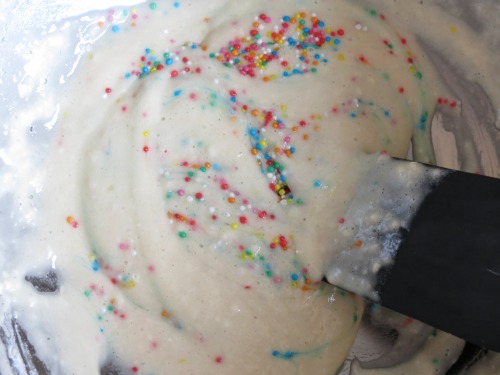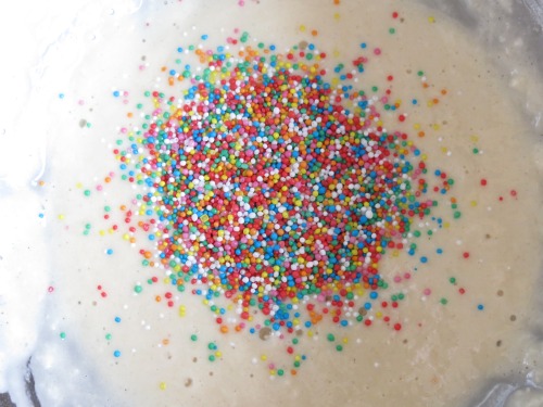 Add sprinkles and carefully stir until almost combined.